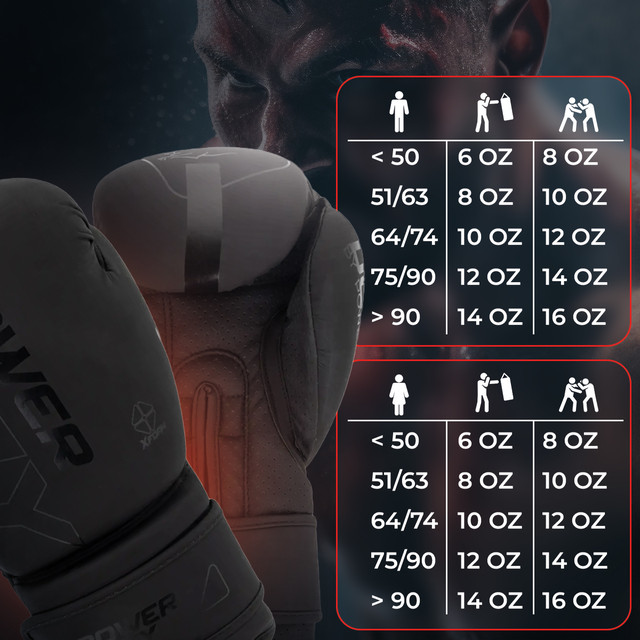 Вибір ваги: Рекомендується уточнити у тренера, які рукавиці вам підійдуть. Якщо такої можливості немає, скористайтеся такими правилами: