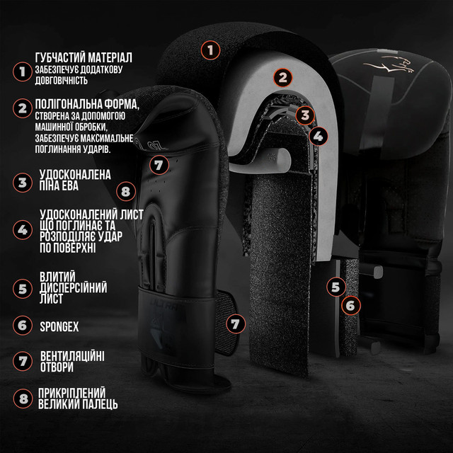 Правильно підібрані матеріали та конструкція забезпечують відмінну амортизацію, що захищає руки від травм і поглинає силу ударів. -